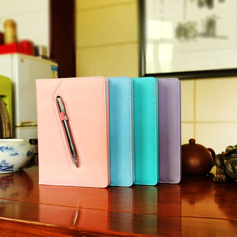封面PU,1.5mm紙板,有海綿,有金屬裝飾的三折磁鐵扣帶有車線,油邊,四周車線,圓背圓角